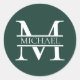 Personalized Elegant Emerald Green Monogram & Name Classic Round Sticker