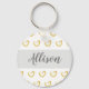 Personalized Elegant Gold Heart Pattern keychain. Customize it with your name for a chic classic design.