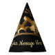 Introducing our exquisite Black and Gold Party Hat, designed to add a touch of sophistication to your special event. The sleek black background sets the stage for the shimmering gold accents that exude elegance and style. Personalize this party hats by entering your own message. This invitation is perfect for formal gatherings, whether it be a corporate event, a milestone celebration, or an intimate soirée with friends.