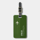 An elegant and personalized design with image of a white airplane on a 2-tone green (editable colour) background, to identify your belongings