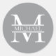 Personalized Elegant Grey Monogram and Name Classic Round Sticker
