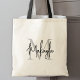 This modern and elegant tote bag features a stylish monogram and name in script typography. It is easily customizable and will make a great gift for family and friends.
