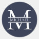 Personalized Elegant Navy Blue Monogram and Name Classic Round Sticker