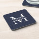 Personalized Elegant Navy Blue Monogram and Name Coaster
