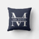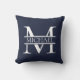 Personalized Elegant Navy Blue Monogram and Name Throw Pillow