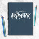 A beautiful navy and white personalized 8.5 x 11 sketchbook. The words, "The Amazing Artwork of" in a hand drawn font personalized with your name below. Customize the sketchbook with the name of your choice to make someone feel extra special. Makes a fun gift for birthdays or for Christmas. Comes in a variety of colours. Designed for you by Blackberry Boulevard.