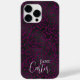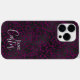 Elegant magenta or dark pink black leopard iPhone case with customizable typography in trendy script font and personalized with your name.
