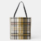 Personalized Elegant Plaid Tan and Taupe Tote Bag