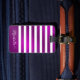 Create a unique personalized luggage tag with a fuchsia purple and white design. Template text makes it easy to type your name, address, phone and other contact information. Backside is in purple with white text.