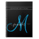 Personalized Elegant Script Blue Black Monogram Notebook