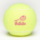 Personalized tennis balls printed with custom name and modern pretty script font and 2 simple tennis racquet.