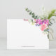 A personalized note card featuring a beautiful watercolor floral design with pink and purple flowers and elegant greenery.