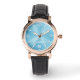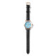 Celebrate her style with a beautifully personalized watch designed just for women. This elegant timepiece features a stunning blue dial paired with a chic black leather strap, creating a timeless and feminine look. Customize it with her name to turn it into a meaningful keepsake she’ll treasure every day.