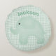 Personalized Elephant Green Plaid Gingham Nursery Round Pillow