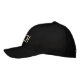 Fits well due to elastic edging, not adjustable. Good qualty material. Good quality embroidering. Subtle lettering (white on beige) just as my wife likes.