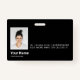 Easily personalize this Custom Horizontal Employee Name Badge with Photo, Scan Bar Code or Qr code and business logo. A simple business design in cool total black and white colours fully customizable in front and back sizes, sans-serif basic and modern fonts and a professional and clear look. These standard security id name tags badges are avaiable with lanyard, metal clip or with retractable. You can personalize your id badge cards choosing any background colour and any font style with Graphic Design editor by clicking on customize further. No minimum order.