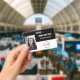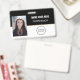 Customize the photo name, company logo and bar code on this modern employee badge.
