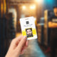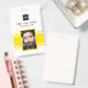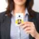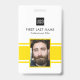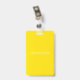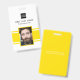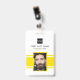 Personalized business office ID badge featuring a yellow and white background, a photo of the employee, your company logo, name and profession.