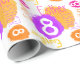 Modern text and paint splats dabs personalized age and name birthday girls gift wrapping paper, featuring your own six letter name in pink, purple, white, orange and yellow. Personalize with your own short name (please note not all names will fit due to the nature of the font) and single digit kids age, currently reads Esther 8, other name lengths are available, if you need assistance contact me, happy to post one for your name. A great way to give a personalized touch to art party birthday gifts. Uniquely designed by Sarah Trett.