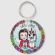 Whimsical hand drawn fairy and unicorn folk art key chain. Just add your name in the customize area.