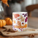 Enjoy your favourite drink in cozy autumn style with this personalized fall design featuring a modern leaf and acorn pattern in rich seasonal tones of orange, plum, and gold. A customizable name box adds a personal touch, making it the perfect gift for family, friends, or yourself. Great for coffee, tea, hot cocoa, or pumpkin spice lattes, this festive design is ideal for fall, Thanksgiving, or holiday gifting.