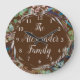 This beautiful brown clock features a circular wreath of richly coloured foliage and herbs, adding a touch of nature to any room. In the centre, a gorgeous script reads "The (Last Name) Family," creating a personalized touch for your home. Surrounding the clock are small numbers, ensuring easy time telling while maintaining a stylish look. You can customize this clock with your family name, making it a perfect gift for newlyweds or as a thoughtful addition to your own home décor.