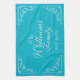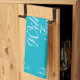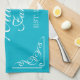 Personalized family name established kitchen towel. Turquoise blue towels with elegant ornate flourish swirly swirls. Classy home decor for husband and wife couple / newly weds. Elegant monogrammed design for men and women. Stylish script calligraphy typography with personalized surname. Cute personalized gift idea for wedding, engagement, baby shower, new baby, anniversary, birthday, housewarming party, reunion etc. Pretty chic interior decoration for new house. Make your own with your last name and custom established year. Est. 20XX.
