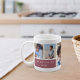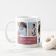 This simple modern personalized photo mug design with mauve pink accents puts your favourite photos front and centre. Customize with six photos of friends, kids, grandchildren, pets, or your favourite places, then personalize with a single initial monogram, your family name, and year established.