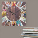 Personalized Family Photo Collage Warm Brown Wood Square Wall Clock