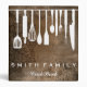 This is beautiful personalized recipe book full of favourite dishes, organized into one beautiful binder. Personalized with your text on the front, and featuring an original illustration of a white fork, knife, and spoon surrounded by a curly swirly border on a burlap looking background. Kitchen tools Recipe binder would be perfect for anything. You can easily change text colour, font, size and position by clicking the customize button.