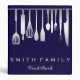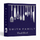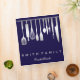 This is beautiful personalized recipe book full of favourite dishes, organized into one beautiful binder. Personalized with your text on the front, and featuring an original illustration of a white fork, knife, and spoon surrounded by a curly swirly border on a burlap looking background. Kitchen tools Recipe binder would be perfect for anything. You can easily change text colour, font, size and position by clicking the customize button.
