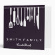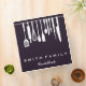 This is beautiful personalized recipe book full of favourite dishes, organized into one beautiful binder. Personalized with your text on the front, and featuring an original illustration of a white fork, knife, and spoon surrounded by a curly swirly border on a burlap looking background. Kitchen tools Recipe binder would be perfect for anything. You can easily change text colour, font, size and position by clicking the customize button.