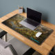 Bring the exotic beauty of this timeless magical fantasy map into your workspace with this exquisite desk mat. Personalize it with a name printed on the lower right corner. This mat features a view of a serene workbench of a busy creator with a high-quality print from a high definition graphic. It provides a smooth and comfortable surface for your work for your laptop, keyboard and mouse. It will also transform your workbench with a stylish and elegant touch. Perfectly suited for all creators, artists, writers and anyone inspired.