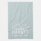 Modern farmhouse farmer's market kitchen towel personalized with your city, family name or other custom text. Use the design tools to personalize the text, fonts and colours to match any home decor.