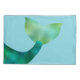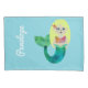 Personalized Faux Foil Blonde Mermaid Girls Pillowcase. Adorable blonde, light skinned mermaid with faux foil pink top and green tail. Pink faux foil seashell in her hair. Fun for a mermaid themed bedrooms or mermaid loving girls. Back of pillowcase has a mermaid tail. Background on both sides is light ocean blue. Personalize with name, edit to change font colours and styles. Coordinating mermaid, merman, and pirate gifts. Contact for custom order requests. Mermaid, ocean, sea life themed designs. ww.SamAnnDesigns.com