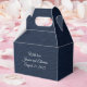 Personalized favour box with the navy blue textured pattern.