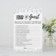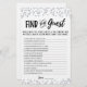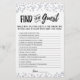 Purchase this editable game and enjoy high quality Find the guest card for your event! This is a game template, You can change the questions as you wish! Silver confetti.