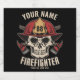 Personalized Firefighter Skull Fireman Fire Department design - Skeleton with Red Helmet and Dual Axes. Customize with your Name, Station/Dept Number and location.