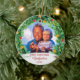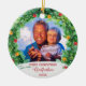 Modern yet elegant godfather first Christmas ornament personalized with a photo and the year. Double-sided design with a floral wreath with festive lights, ideal as a keepsake for the Holidays for new godparents.