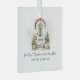 Celebrate New Beginnings with this Personalized "Our First Christmas in Our New Home" Ornament with a decorative watercolor front door graphic all decked out for the holidays.  The door can be personalized with the year or the house address number.  It is customizable with the couple's name in a dark green serif font-you could also put the year below the couple's name.