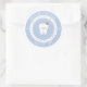 Personalized First Tooth party decorations. Baby blue sticker with cute tooth, editable name and milestone date. Visit the shop to see all the First Tooth collection.