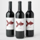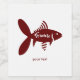Personalized fish wine labels. Maroon fish with casual script text field at centre and maroon plain text at bottom.