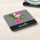 Striped hard plastic coaster with flamingo image. Personalize this product by adding your name to it