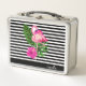 Striped lunchbox with flamingo image. Personalize this product by adding your name to it