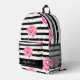 Personalized Floral Black Stripe and Gold Confetti Printed Backpack