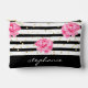 Personalized Floral Black Stripe Cosmetic Accessory Pouch