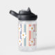 This cute water bottle features white daisies on a striped background in pastel colours. Easily customizable with your name. Great for Back to School or as a gift.