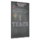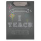 Chalkboard look clipboard with chalk style text that reads I Teach, a blue doodle flower, multicolors doodle flower, pink and white butterfly, and a chalkboard banner that you can easily add your name to! You can also add the class or subject that you teach to further customize it!