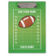 Coach clipboard that can be customized with the team name as well as the coach's name on a football playing field design.