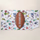 A blanket for current and future football players and/or fans, it features a random pattern of illustrations of quarterbacks, running backs, receivers, kickers, and defenders. Personalize with the name of your choice which will appear in a fun font superimposed over a large football in the middle of the design.